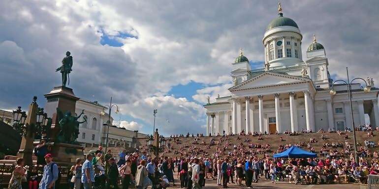Travel by ferry to the charming capital city of Helsinki. Enjoy an afternoon in the the white city of the North with an orientation walk and free time.