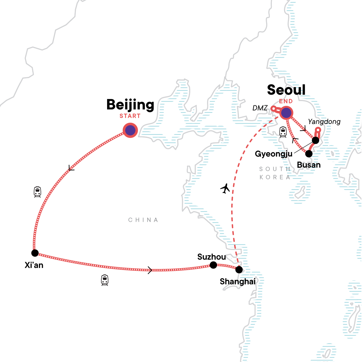 Hike along one of the best-preserved stretches of the Great Wall of China, Marvel at the Terracotta Warriors and dive into China’s ancient past, Discover the dynamic contrasts of futuristic cities and time-honoured traditions in both countries, Explore Seoul’s Gyeongbokgung Palace and wander through Bukchon Hanok Village, Spend a peaceful night in a traditional temple stay in historic Gyeongju