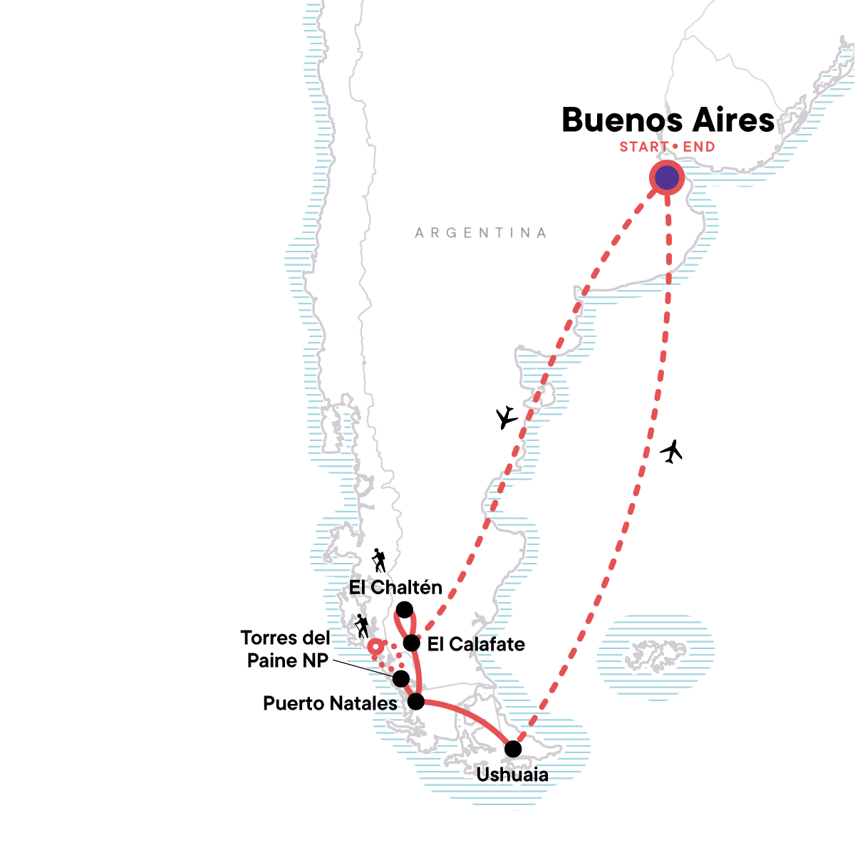 Your Welcome Moment: Welcome Moment - Meet Your CEO and Group. El Chaltén and Los Glaciares National Park hike (full-day). Perito Moreno Glacier guided tour. 3 days of excursions in Torres del Paine National Park including hikes with expert mountain guides. Internal flights. All transport between destinations and to/from included activities.