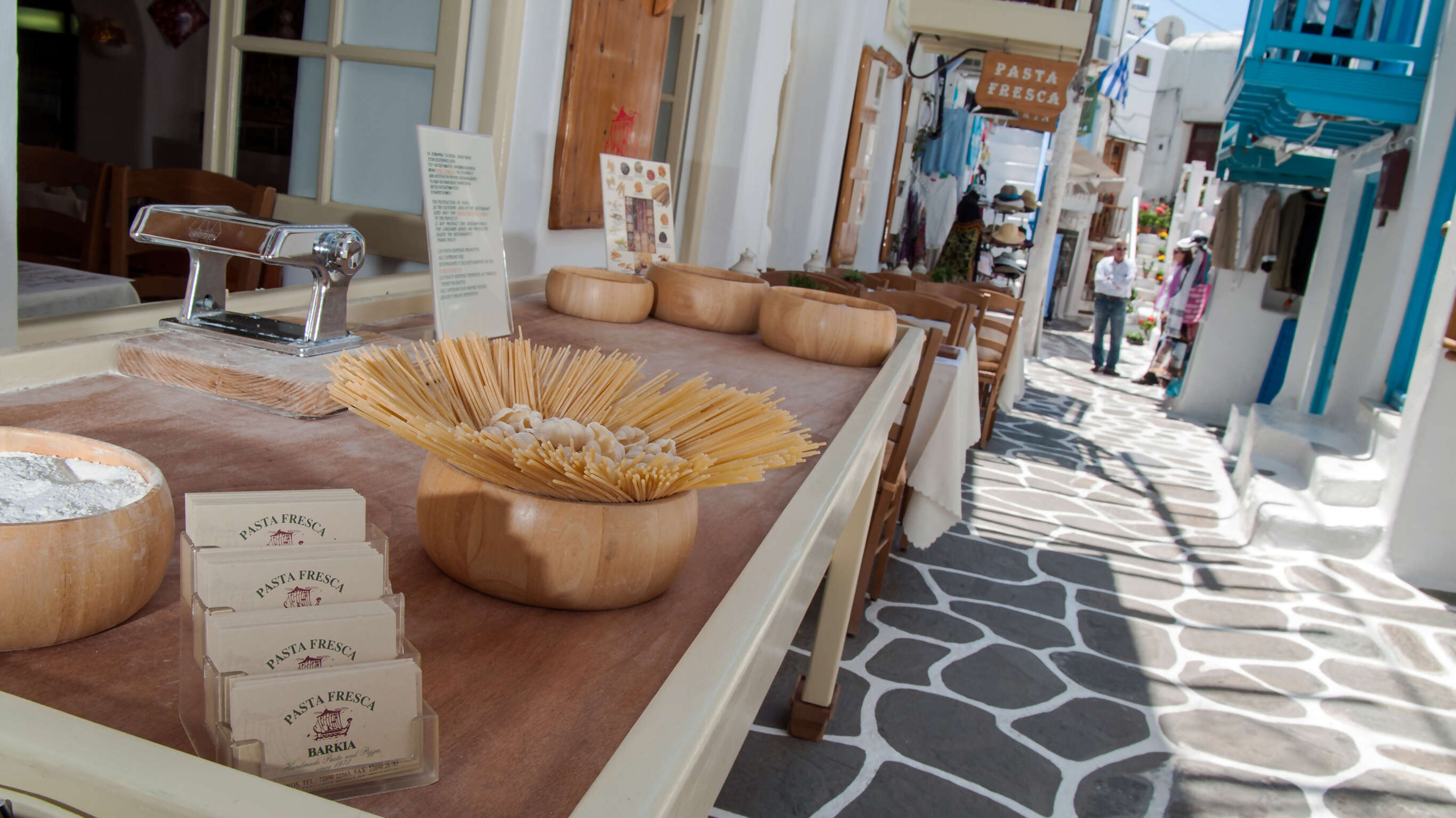 Coming from Mykonos town - head towards the new port, you’ll see the sailing boats on the left and on your right will be the Arista supermarket. Keep going for 200m and turn right to find Molaraki Restaurant, 50 metres to the right of Matthews Taverna (our former meeting point).