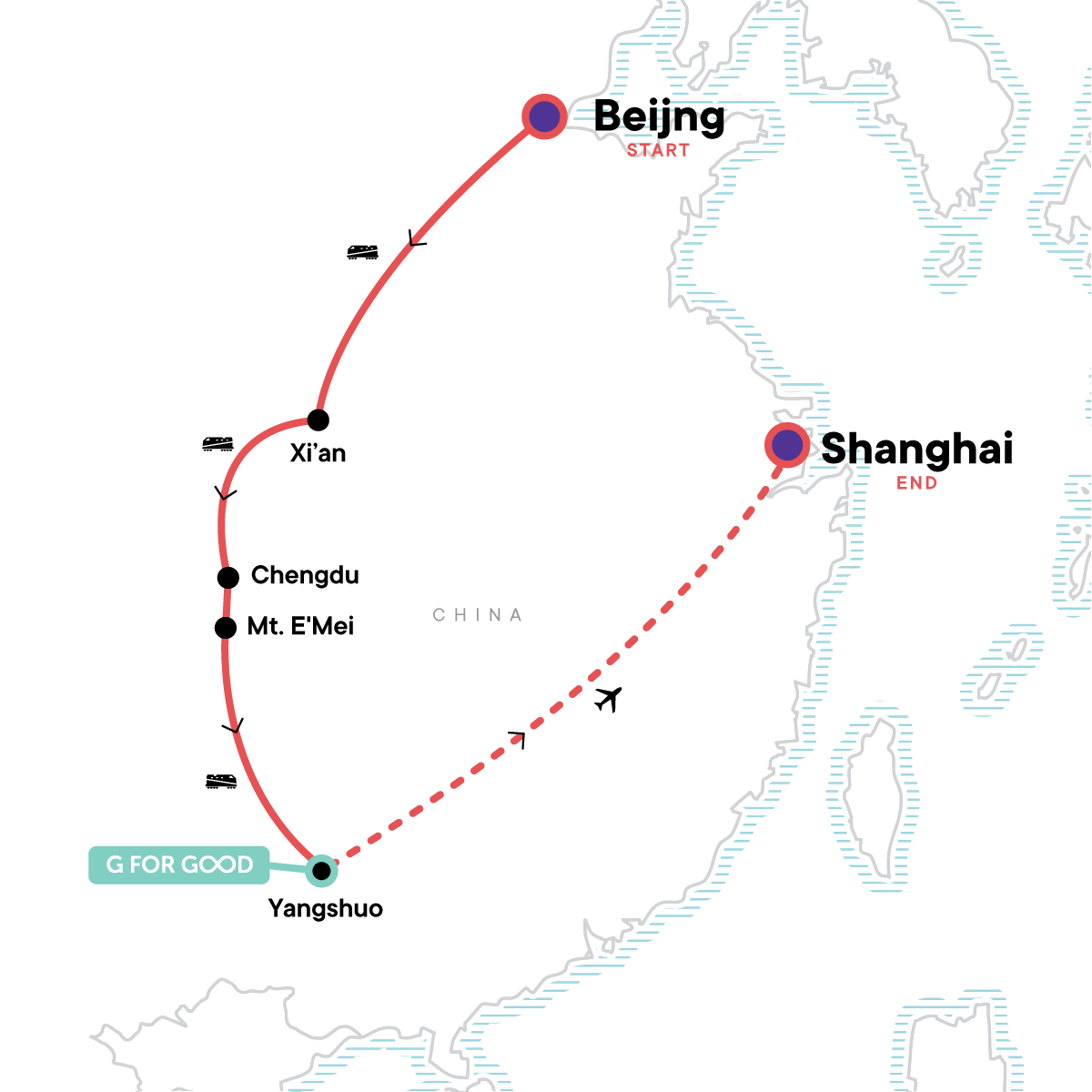 Immerse yourself in China's vast and beautiful diversity on this 15-day tour of its cultural and natural highlights. Climb the Great Wall and stare down the Terracotta Warriors, then head south into landscapes brimming with history. Rest your gaze on the giant Buddha of Leshan and explore ancient mountainside monasteries at Emei Shan before stepping out to experience the vibrant rural life and stunning scenery of Yangshuo. From Beijing to Shanghai and everything in between, discover all the highlights and still have time to explore on your own and with your CEO.
