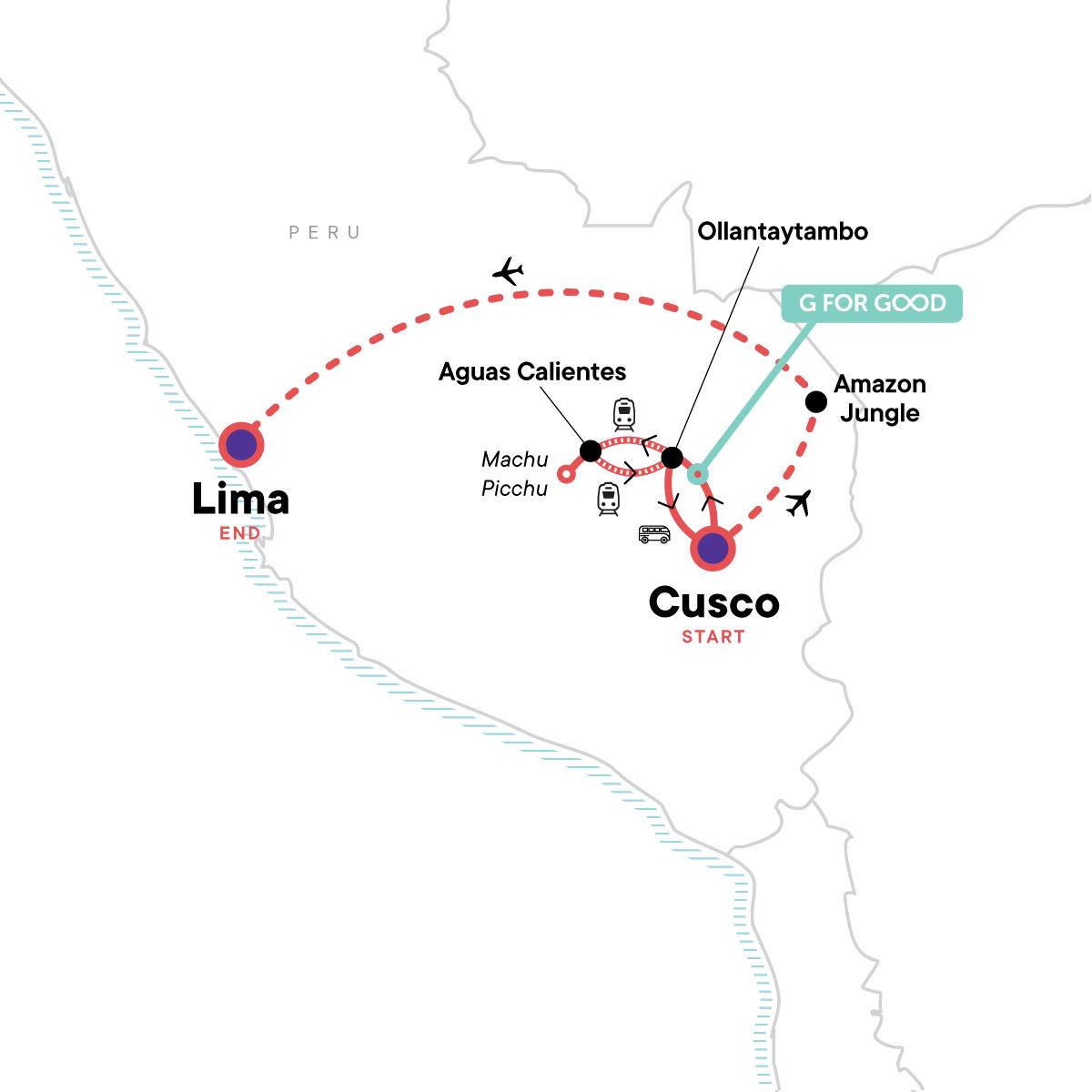 Your Discover Moment: Cusco. Sacred Valley guided tour. Pottery-making demonstration. Train to Machu Picchu. Machu Picchu guided tour. Amazon Jungle stay at the exclusive G Lodge Amazon (3 days). Guided excursions with naturalists. Rubber boot use. Internal flights. All transport between destinations and to/from included activities.