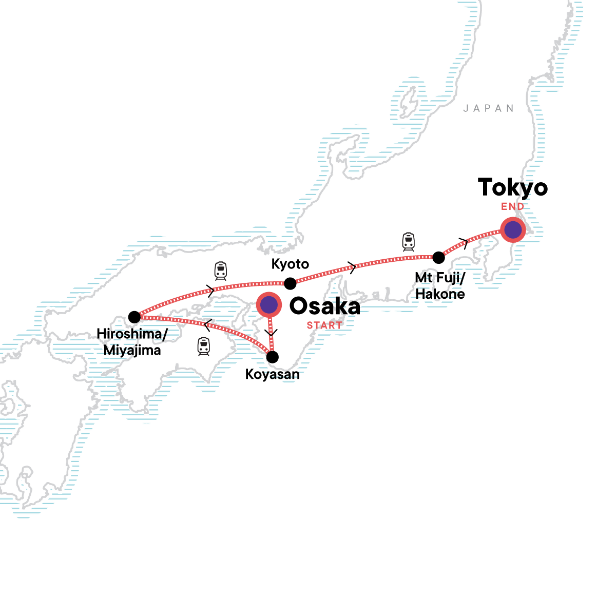 Your Local Living Moment: Overnight in Mount Kōya Temple, Kōyasan. Hiroshima Peace Park and Museum visit. Miyajima Island excursion. Nijo Castle and gardens visit. Gion walk. Fushimi Inari shrine visit. Lake Ashino-ko boat ride. Traditional kaiseki meal. Japan Rail Pass. All transport between destinations and to/from included activities.