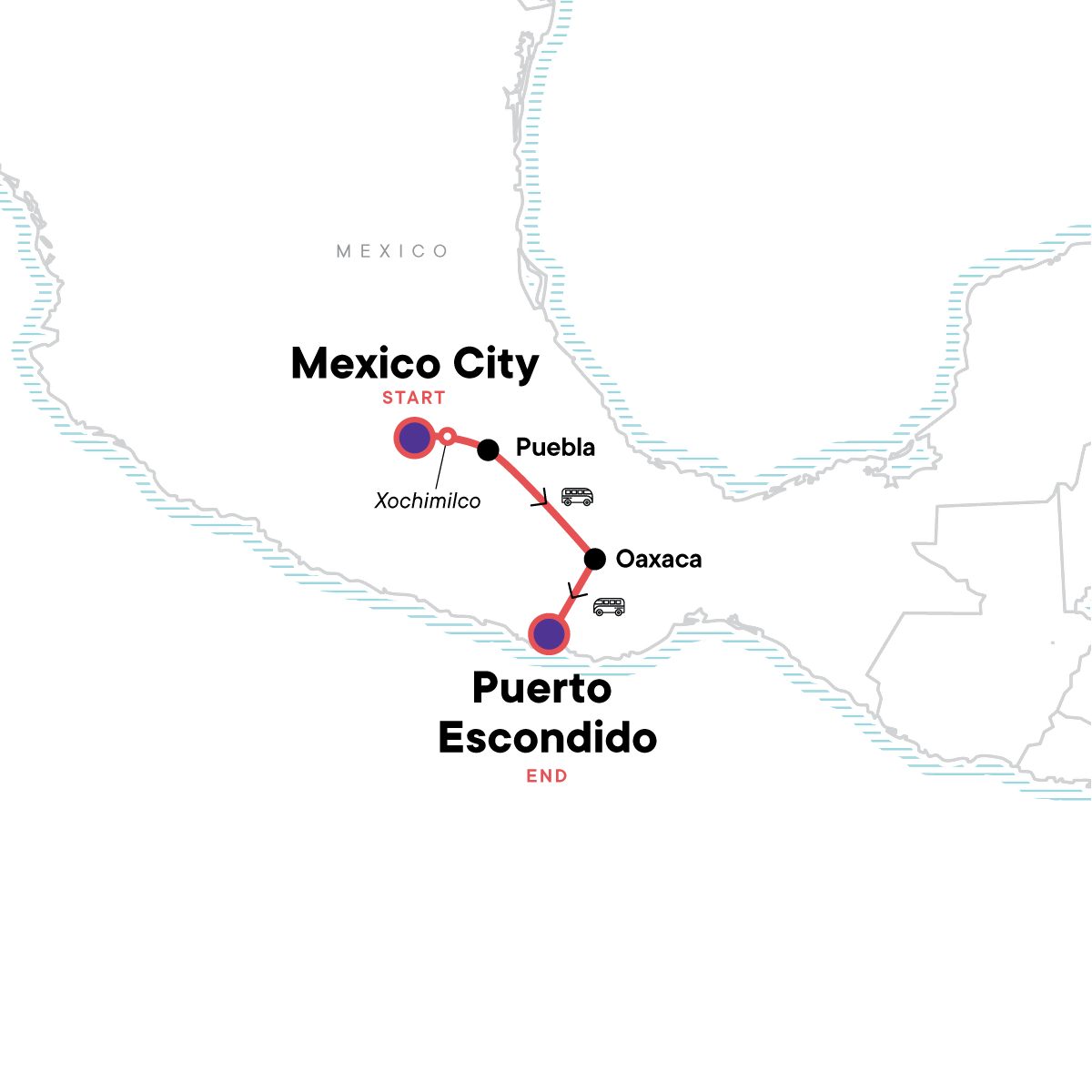 Your Discover Moment: Oaxaca. Insiders tour of Mexico City with included street food lunch. Boat ride along the ancient canals of Xochimilco. Typical food experience meal in Oaxaca with tequila and mezcal tastings. Beach time at Puerto Escondido. CEO-led orientation walk in Puerto Escondido. All transport between destinations and to/from included activities.