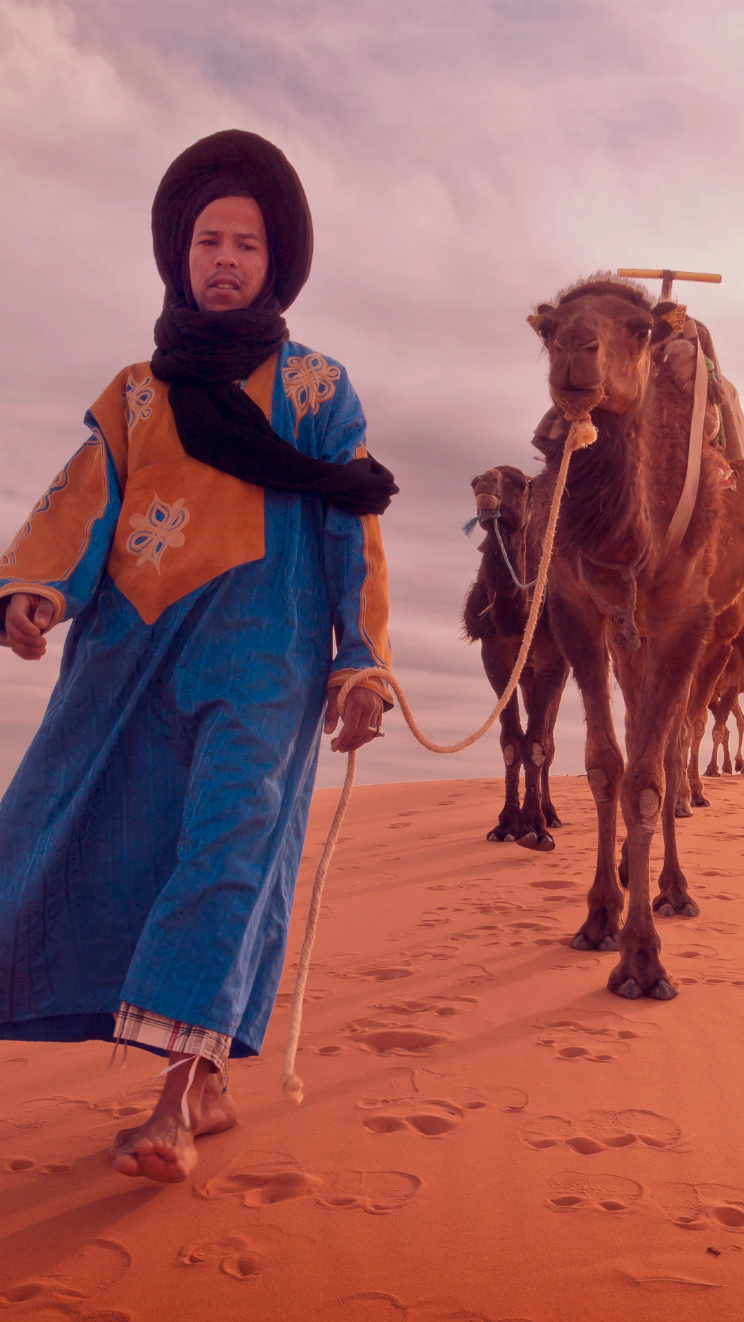 Settle into your hotel at the edge of the dunes and enjoy a warm welcome with mint tea. In the late afternoon, take a camel ride deep into the dunes to watch the sunset. Learn to tie a turban to keep the desert sun off your face and add a little flare to photos.