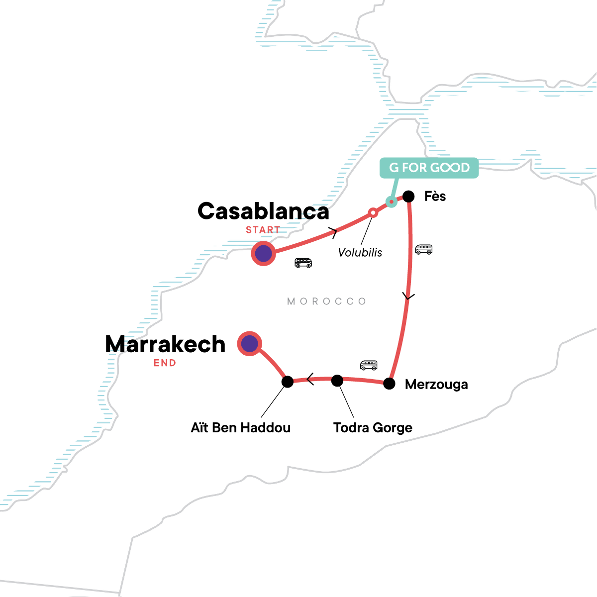 Your Welcome Moment: Welcome Moment - Meet Your CEO and Group. Volubilis guided tour including visit to the Roman ruins. Fès medina guided tour including artisans' quarter and Fès tannery. Sunset camel ride in the desert. Todra Gorge stay with walk through local villages. Aït Ben Haddou kasbah tour. Marrakech medina guided walk of the souks. All transport between destinations and to/from included activities.