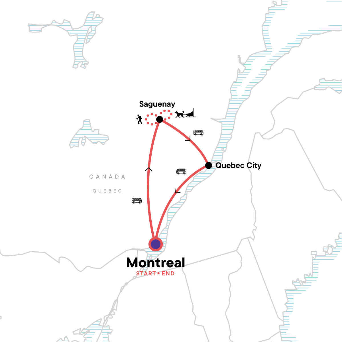 Travel back to Montreal in the morning, where your tour ends upon arrival to the airport. Please do not book onward travel prior to 2pm.