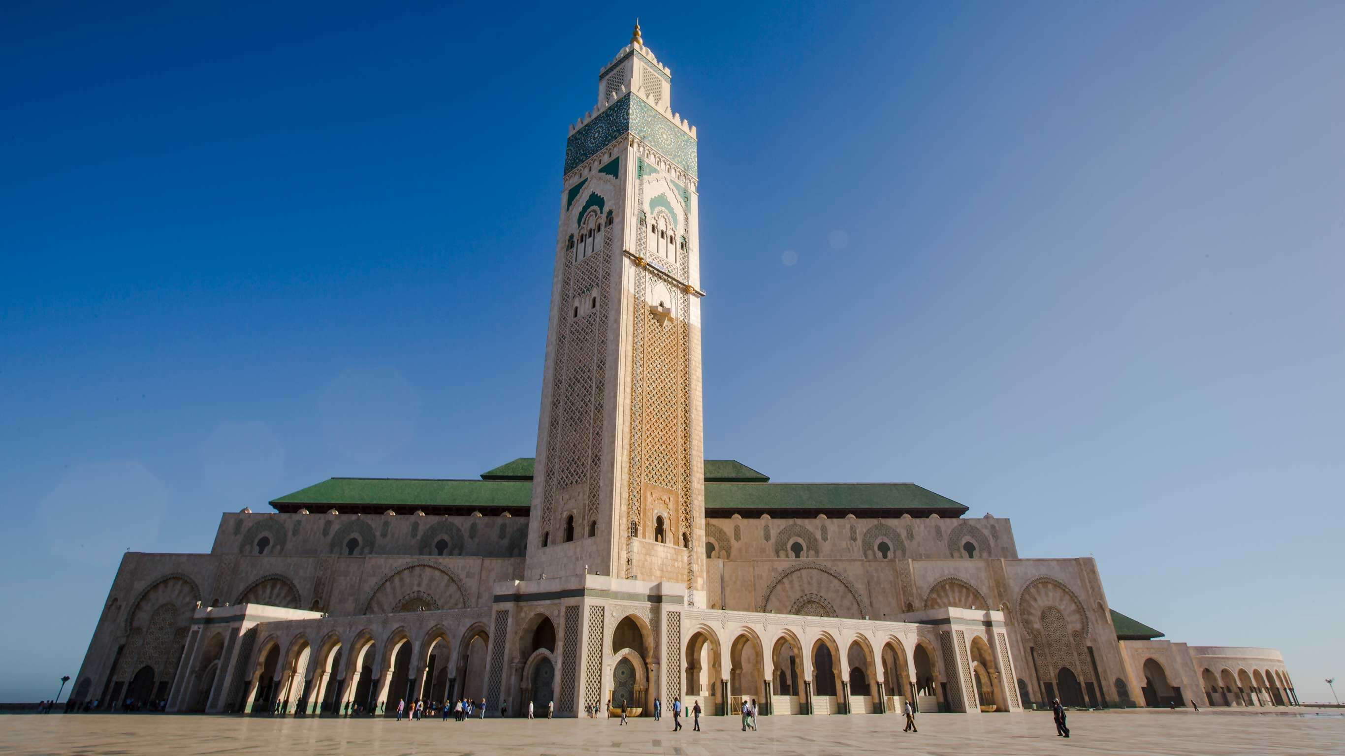 Stroll through the city as you admire its Mauresque architecture, Visit the spectacular Hassan II Mosque overlooking the Atlantic ocean, Gaze at the glasswork of the Notre Dame Cathedral, Enjoy a local lunch at the Marché Central, Dine on authentic pastilla for dinner